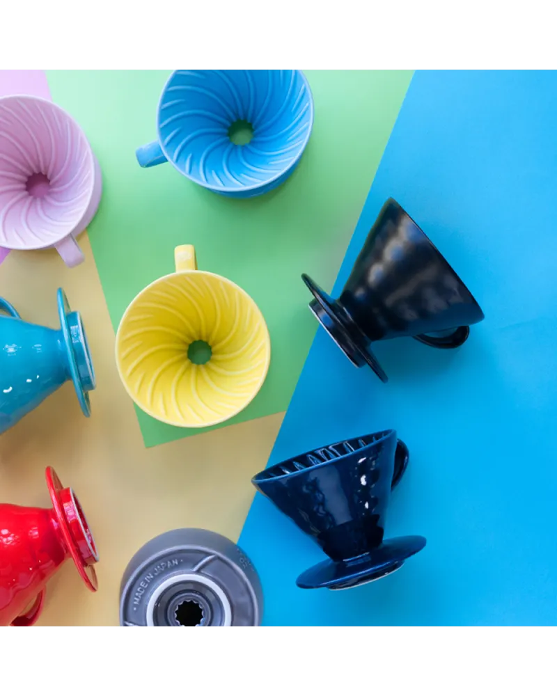 El V60 Dripper Cerámica Negro Mate de Hario combina elegancia y rendimiento superior en un dripper de cerámica que conserva el calor de manera óptima para asegurar una extracción uniforme del café molido. Su diseño en espiral y su acabado en negro mate ofrecen un estilo sobrio y moderno, ideal para cualquier estación de café. Este dripper es perfecto para baristas caseros que buscan precisión y calidad en cada taza.