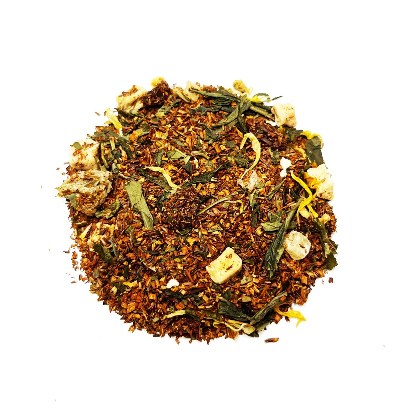 • Rooibos y té Sencha: Una base rica en antioxidantes y sin cafeína, con el toque herbal y fresco del té verde japonés.