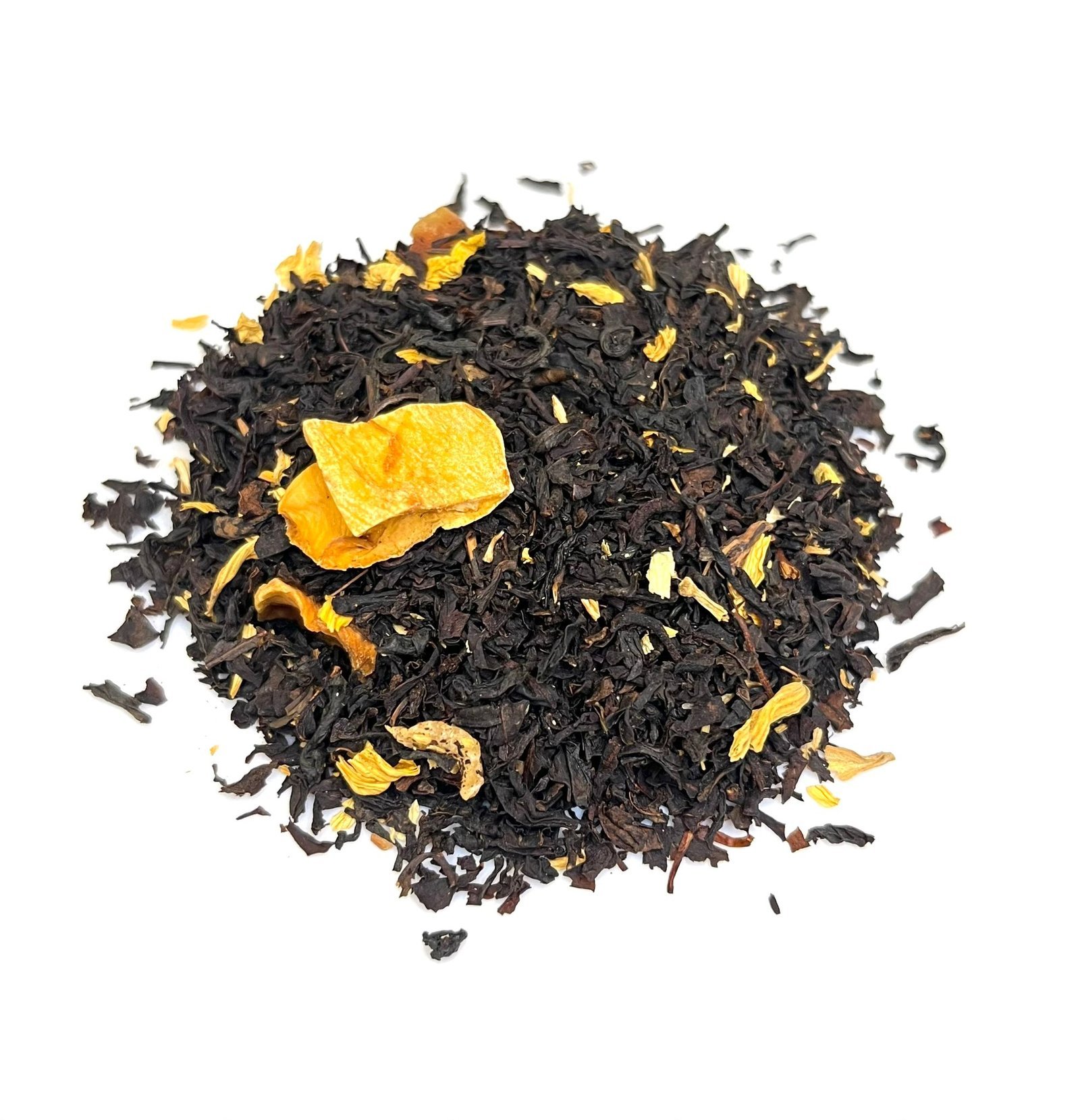 Disfruta del Té Negro Mango, una mezcla exótica de té negro con mango confitado, copos de mango, flores de girasol y un aroma tropical irresistible.